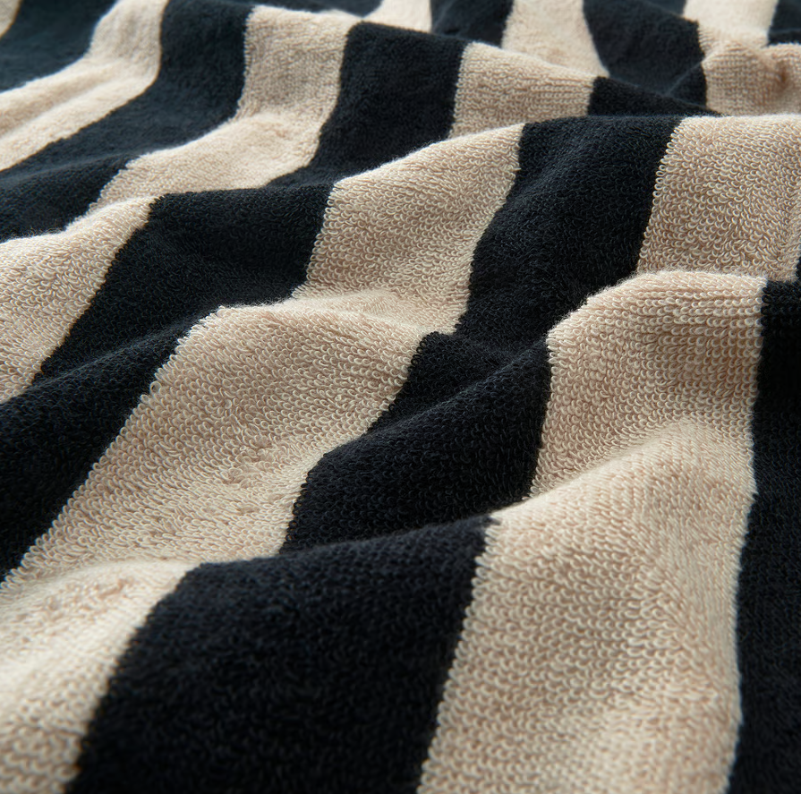Bath towel, black/light beige striped, 70×140 cm